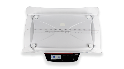 - Integrierte Längenskala in der Wägeschale (Messbereich: 0 – 60 cm, Einheiten in 0,25 cm Schritten)