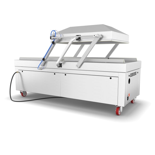 Dieses Doppelkammer-Standmodell ermöglicht ein schnelles und effizientes industrielles Verpacken von Food- und Non-Food-Produkten. Denn es bietet die Möglichkeit, gleichzeitig zu vakuumieren und vorzubereiten.